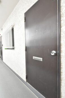玄関扉は旧式感がありますが、玄関扉は共用部なので個人で勝手に変更することができないのです。ドアの内側はお好きに変更できますよ♪