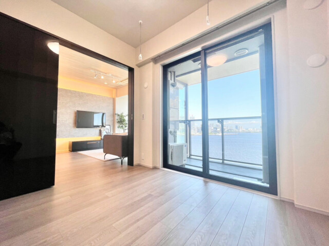 東京湾を望むダイレクトウィンドウ。 6階以上の全戸には高さ2.35mの大きな窓が設置され、東京湾や都心の美しい景色を一望することができます。