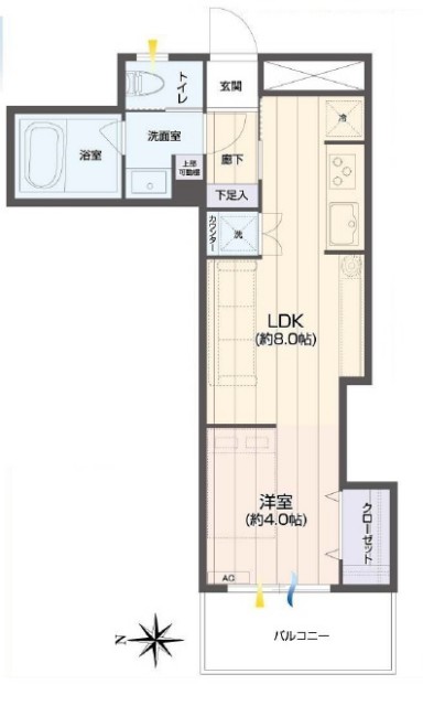 LDKとは、間仕切り扉ではなく、あえて造作の壁を設置し広い1R感覚で使えるようにされています!