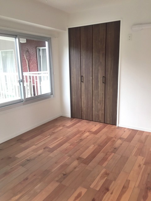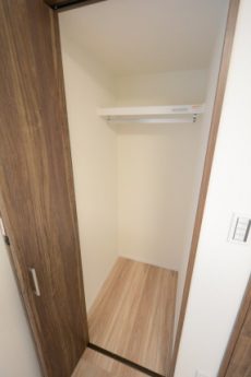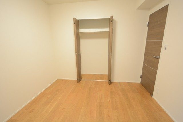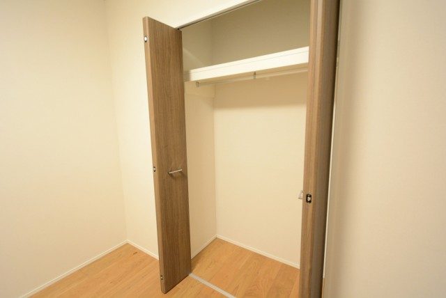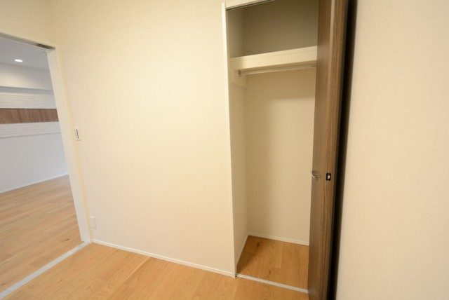 木目はプリントではなくパネルが貼られています。最近のプリントはよく出来ているとはいえ、やっぱり違いますよね!洋室の収納はハンガーパイプの付いたクローゼット。