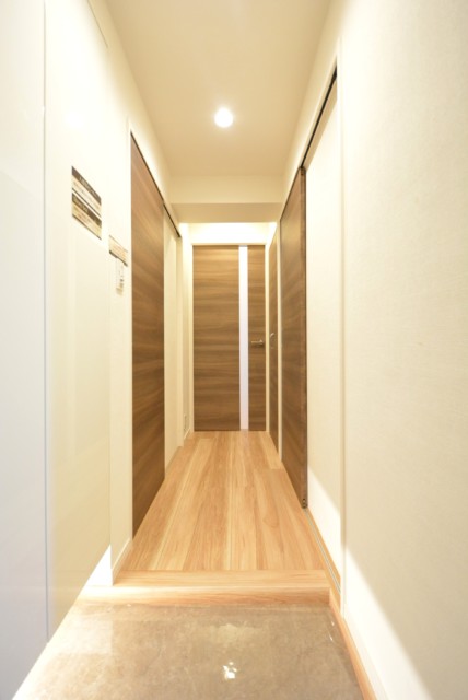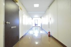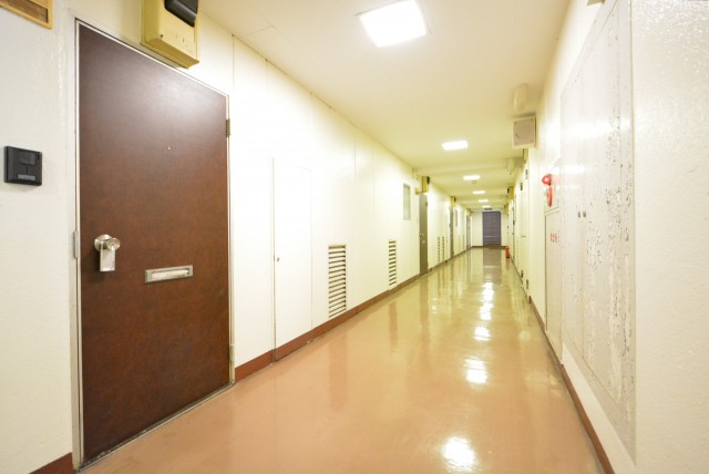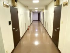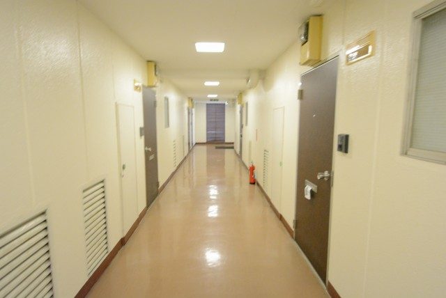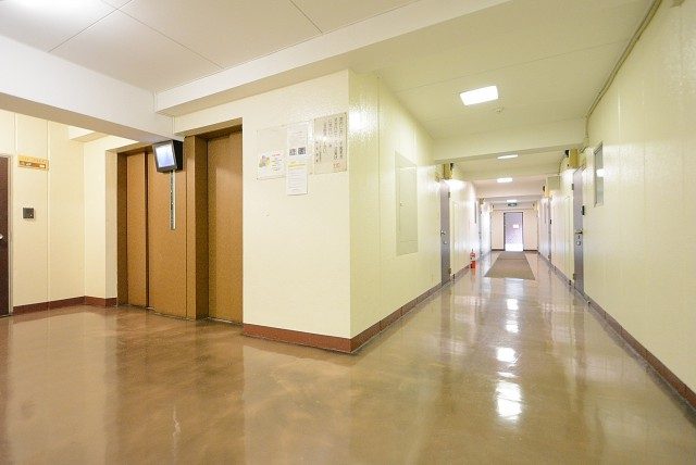 エレベーターで4階まで上がると広いエレベーターホールへ出ます。そこからは広い内廊下を通ってお部屋へ。内廊下は天候の影響も受けず、防犯面にも優れているのがいいところです。