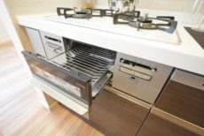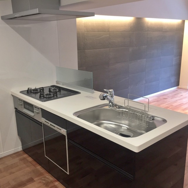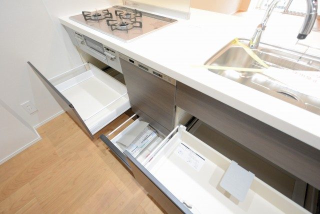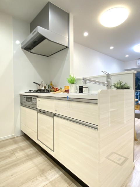 キッチンは浄水機能付き水栓、お料理がはかどる3口コンロ、食洗機、上下に収納たっぷりとスペック◎!後片付けが楽になれば食後ゆっくり過ごす時間も増えるはず・・・!