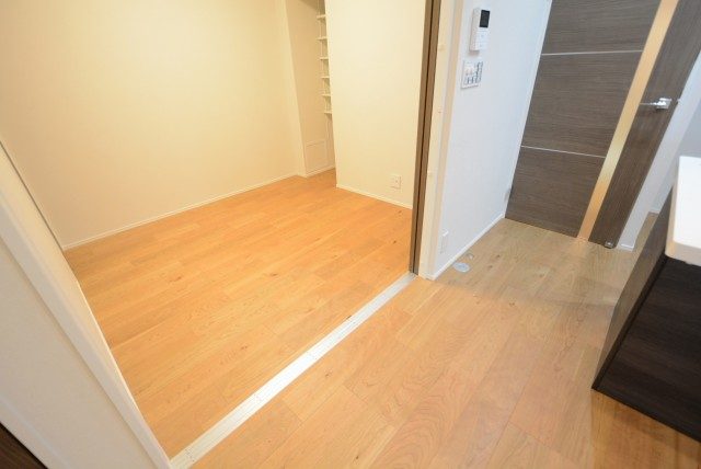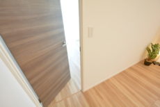 LDKと同じフローリングながら、自然の木目を生かしたアクセントウォールによって全然違った雰囲気のお部屋になっています。入口が引き戸なのでお部屋のスペースを無駄なく使えますよ。