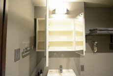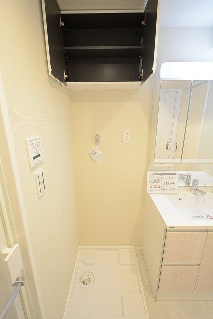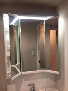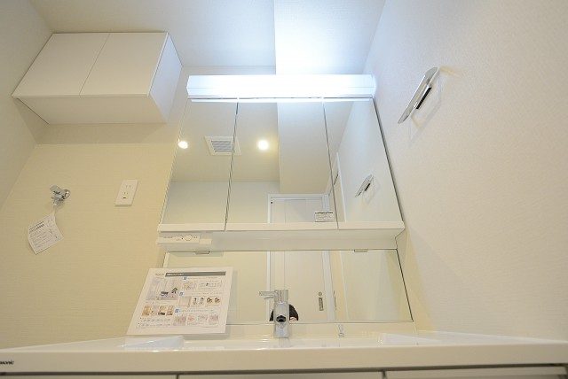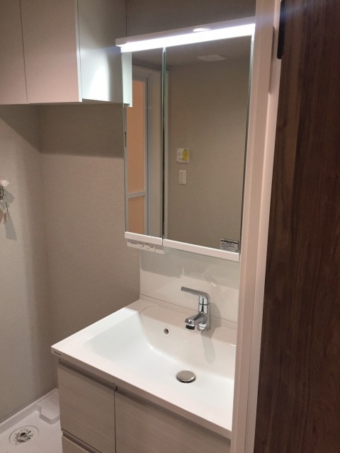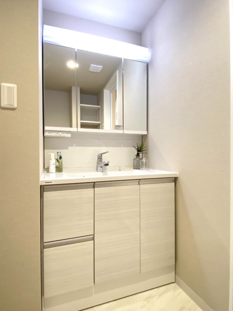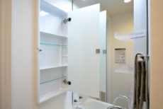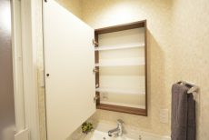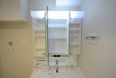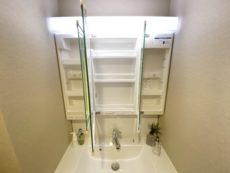 【洗面室:三面鏡付き洗面化粧台・洗濯機スペース】