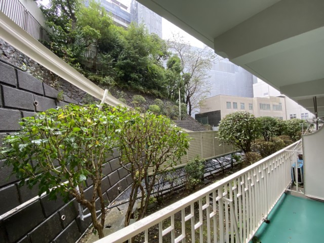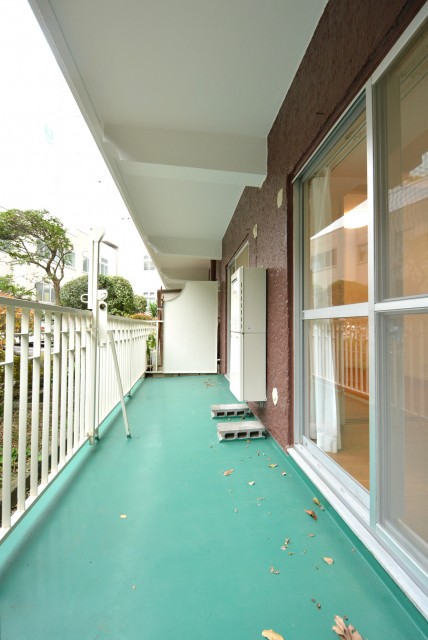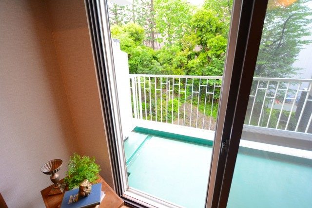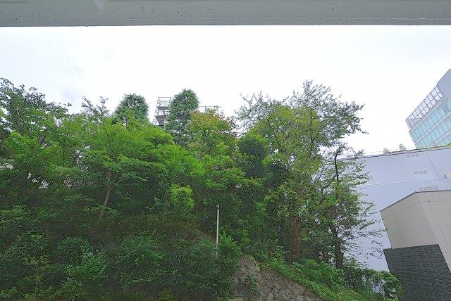 バルコニーの外はお隣の立正大学。緑がたっぷり目に入って快適です。