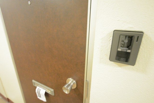 玄関ドア横にはモニター付きインターホンが設置されていて、室内から玄関前の様子を確認する事が出来るようになっています。手が離せない時などにわざわざ玄関まで来なくてすむので助かります。