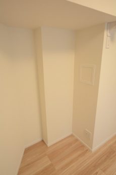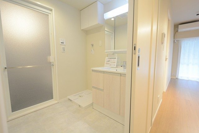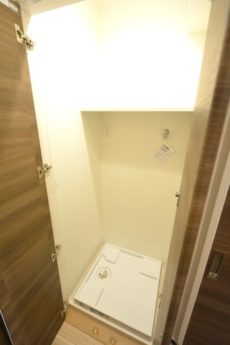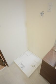洗面台とバスルームの間に洗濯機置き場があります。