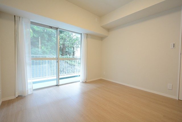 ベランダに面した洋室です。南東向きなので、こちらは朝陽が入るでしょう。