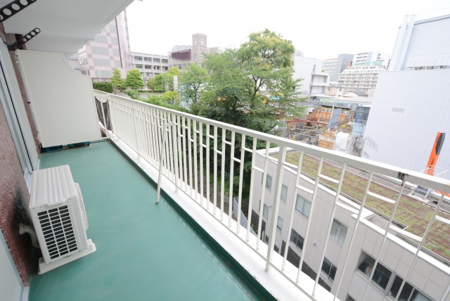NK五反田コータース 眺望バルコニーの外はお隣の立正大学。緑がたっぷり目に入って快適です。