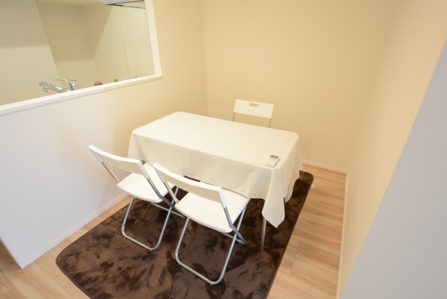 ダイニングキッチンは約8.7帖。キッチンとダイニングスペースを分けて使いやすいお部屋の形になっています。家具が置いてあるので実際の生活イメージもつきやすいのではないでしょうか?