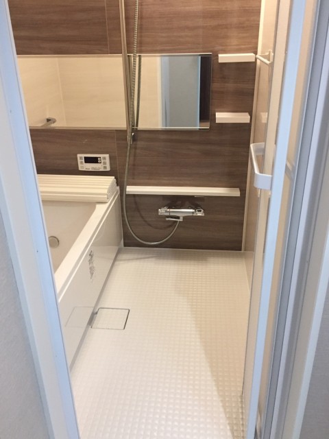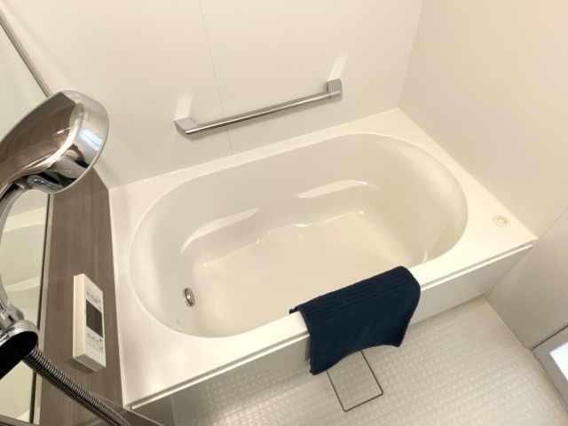 NK五反田コータース 浴室乾燥機、追い焚き機能付きバス NK五反田コータース 浴室乾燥機、追い焚き機能付きバス白とグレーでとてもシンプルなバスルーム。