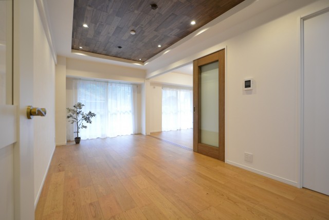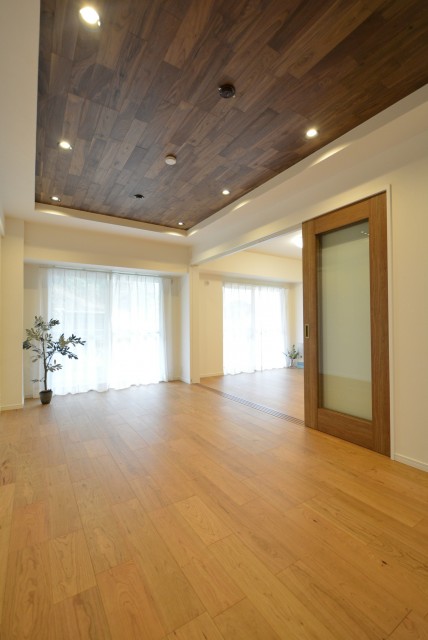 今回は、LDKと洋室の壁面にエコカラットを貼ってあり間接照明を設置しています!