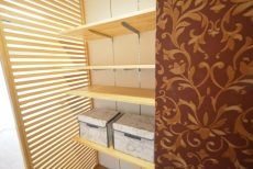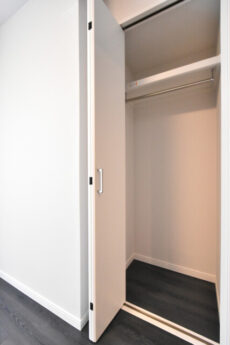 洋室内にある大型のクローゼットにはお洋服をかけるポールが前後で2本ついています。たたみたくないスーツやコートもこれならたっぷり仕舞えます。ピクチャーレールもついているので場所をとらずに手軽に思い出の写真やお気に入りの絵も飾っておけます。