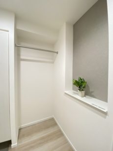 そしてシューズBOXの向かい側の壁面にはちょっとしたインテリアが飾れるニッチがつくられています。お好みの物を飾ってステキな玄関に仕上げてみてください♪