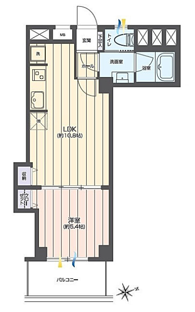 今回ご紹介するお部屋は6階、専有面積47.31㎡1LDK。おひとり暮らしやDINKSの方にお勧めのお部屋です。