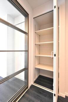 NK五反田コータース 廊下収納廊下収納は高さが調節できる棚付き。日用品のストックなどはこの中でまとめて管理できそうです。