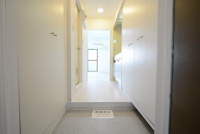 玄関左側には洗濯機置場、右側にはシューズボックスがあります。シューズボックスとクローゼットが併設されているので、玄関で脱いだコートなどもこちらに掛けておく事が出来ますよ!!