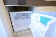 下段左側には冷凍冷蔵庫、容量が足りなさそうであれば別途冷蔵庫をお部屋に置く必要がありますね。