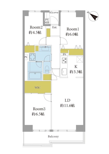 間取りのご紹介です。3LDK、65.33㎡。3階。
