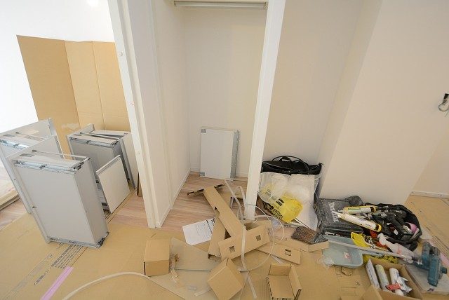 廊下にコンロの入った箱が置いてありましたので、完成まであと少しです。