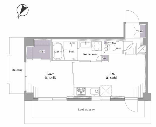 6階角部屋。バルコニーとルーフバルコニーのついた眺望良好なお部屋です。