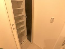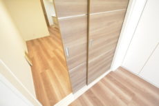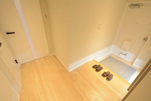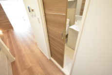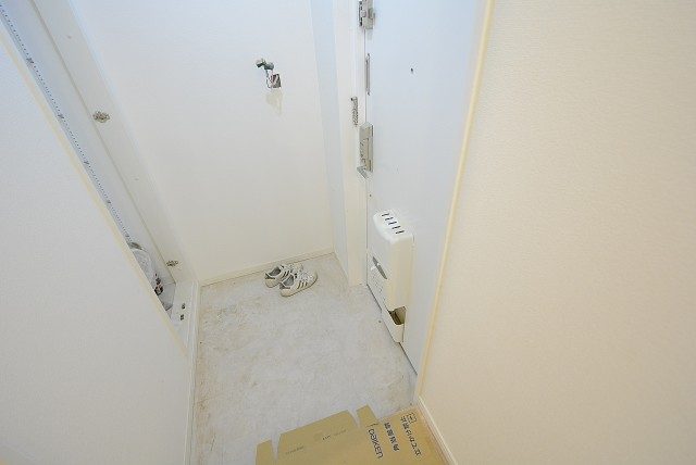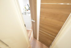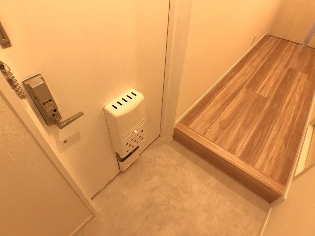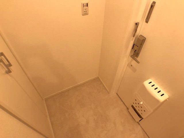 玄関ドア横にはテレビモニター付きインターホンが設置されていて、お部屋の中から訪問者を確認する事が出来ます。オートロックの無いマンションなので、応対するかを見て決められるのは助かりますよね。
