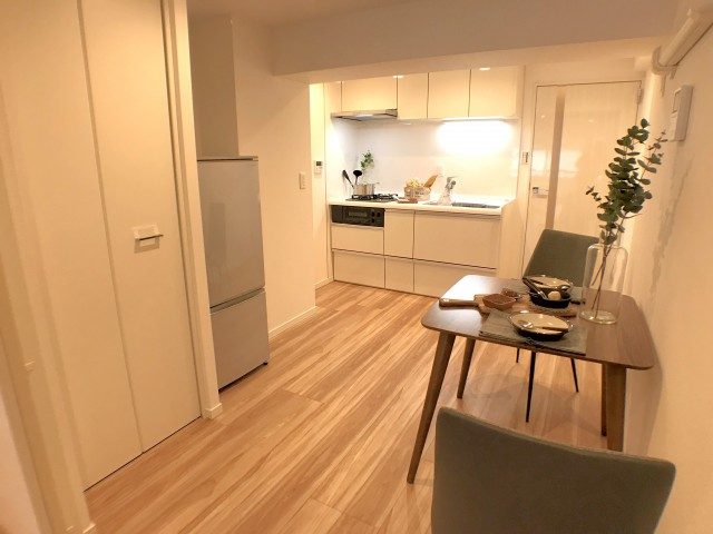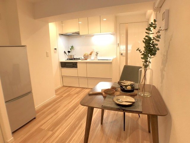 ナチュラル系のお部屋は色使いがシンプルなので、家具の選択肢も広がりそう。自分好みに変えていく楽しみがありますね。今度はキッチンに行ってみましょう。