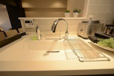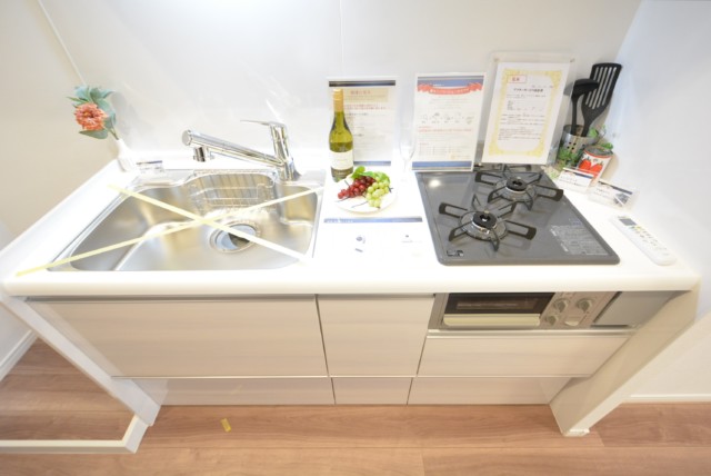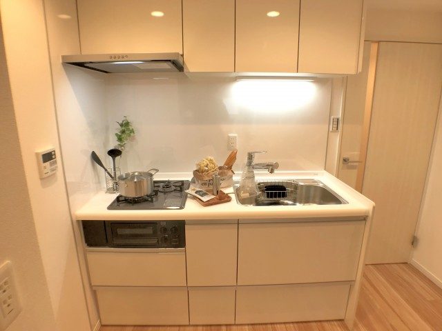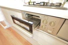 コンロは2口、グリルも付いています。グリルって魚イメージが強くてあまり使わない方がいらっしゃるようですが、もったいない!野菜や肉など何を焼いても美味しいんですよ(^^)フライパンとは一味違うので、是非お試しを!