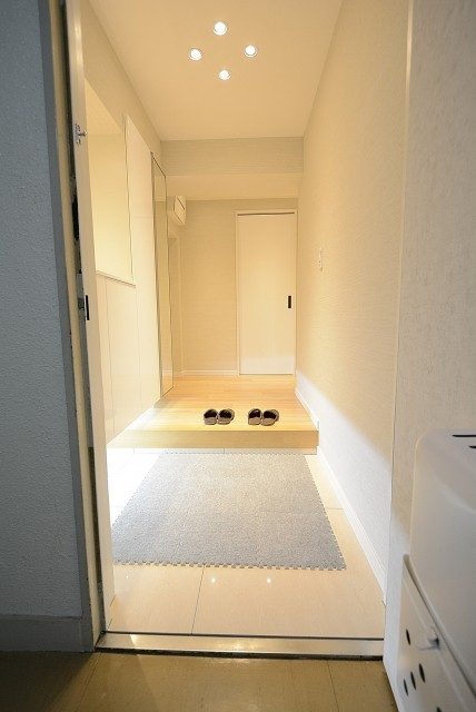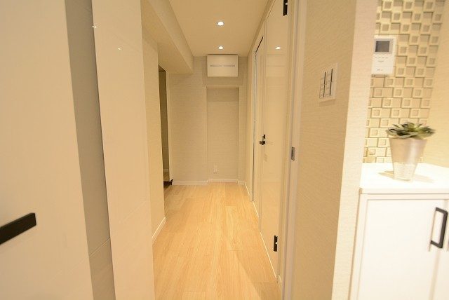 エントランスが3階なので、2階のお部屋へは下りエレベーターに乗ります。なんか変な感じですね^^;)廊下は内廊下。天候などに影響されず、防犯性も高くなっています。