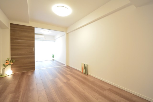 広さは約6.6帖。奥の洋室とはスライド式のドアで仕切られているので、写真の様に開けている状態だと全体がとても広く感じますよ(´∀`*)ノ