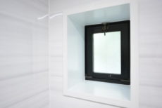 その先は、光射す吹き抜けを囲むホールになっていました。真っ白なので明るいですね。