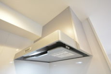 換気扇は調理を始める少し前から回し始めると効果的。煙を吸うというより、外から換気扇への空気の流れを作って油などの粒子を外に出さないイメージだそうです。調理台後ろには冷蔵庫や家電ラックを置けるスペースもたっぷり取られていました。