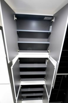 仕切り戸は壁部分に納まりますので、開けておいてもスッキリですよ。引っ張り出して扉を閉めれば…