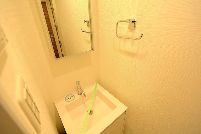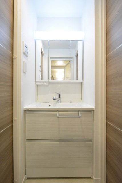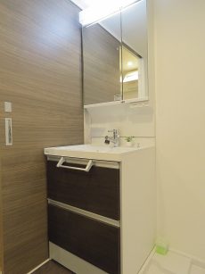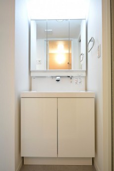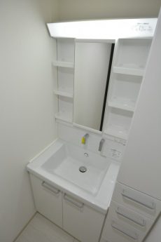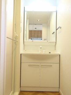 まずは三面鏡付きの洗面台。寝ぐせも簡単に発見出来ますよ。