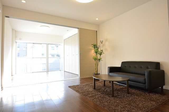 扉の奥は約11.0帖のLDK。お部屋に合わせた家具もセットでついてきます!