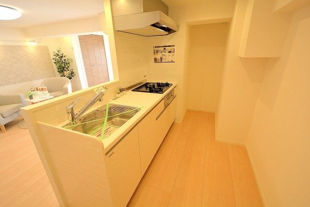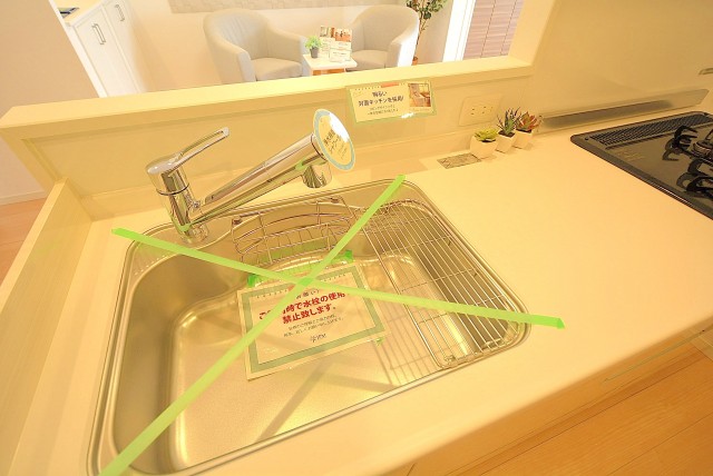 キッチンは3口コンロに水栓には浄水器付きとスペックもグー。お鍋やザルもワークトップ下の収納スペースにサクサク仕舞っておけそうです。