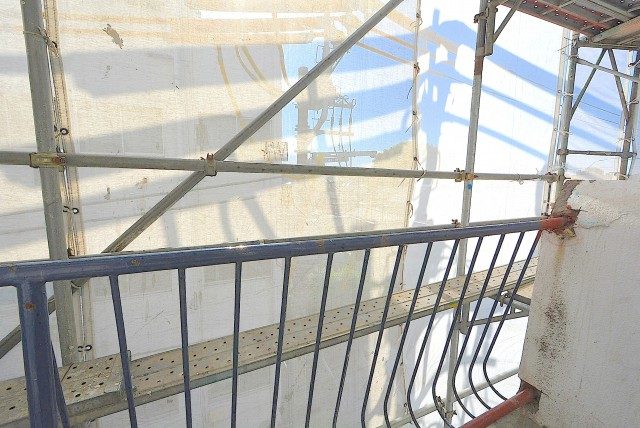 最後にバルコニーに出てみます。2.7㎡の南向き。日当たり十分です。