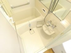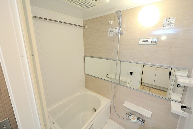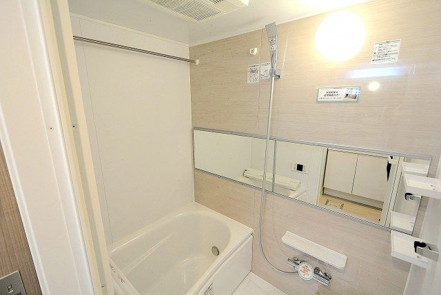 バスルームもホワイト基調♪♪バスタブも大きめサイズです。追炊き機能付きなので、いつでも温かい湯船に浸かれるのは嬉しいですね。