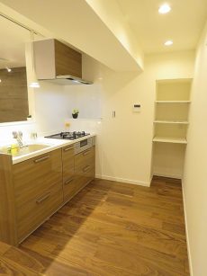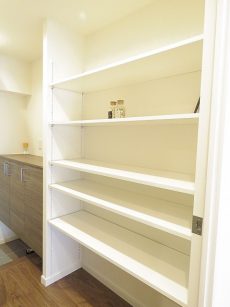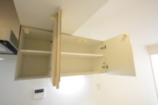 キッチンのちょうどコンロの後ろ辺りにまたまた収納!食器等を収納するのにちょうど良いですね。