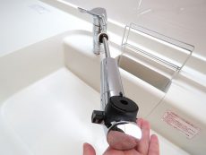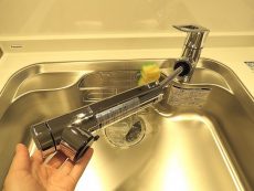 水栓は浄水機能付きシャワー水栓。お料理にコーヒーにと、手軽に美味しいお水を使えます。あっ、氷は水道水の方がいいらしいですよ。