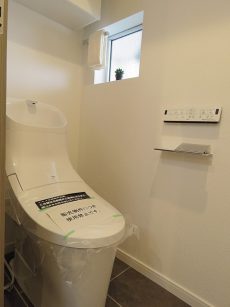 トイレはTOTO製のウォシュレット付きです。TOTOのトイレは機能的で、計算ずくの素材や水の流れによって汚れが付きにくく落ちやすくなっています。使う水の量は以前のものの1/4で済むようですよ!!