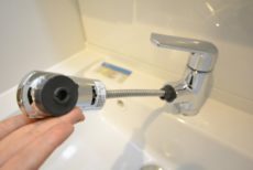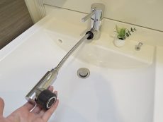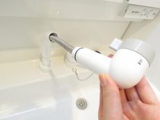水洗はハンドシャワータイプ。洗面ボウルを流したり、発見した寝ぐせを直したり(笑)