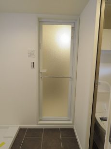 キッチンの向かい側の扉は洗濯機置場と洗面室です。