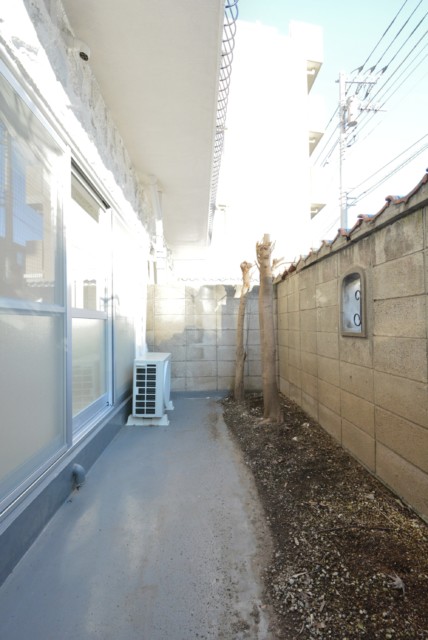 一階ですので小さいお庭が付いてる感じ。今は枝を払われた木だけなので寂しいですが、並びには見事な椿の花を咲かせているお部屋もありましたよ。園芸好きな方なら腕が鳴るところですね。そうでない方も是非チャレンジを♪♪