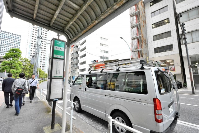 芝公園の駅から桜田通りに向かって歩いていくと、マンションの近くにバス停があります。