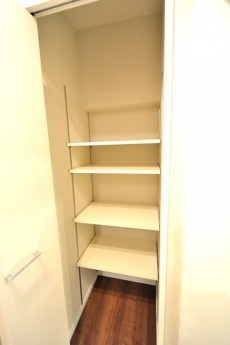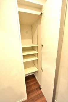 洗濯機置場には棚がありませんので、収納用に棚を設置すると綺麗にお使い頂けそうですね♪