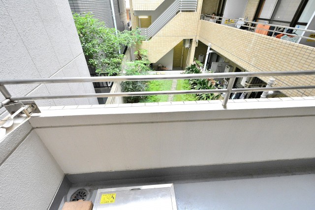 中庭には沢山の緑が見えて、気持ちのいいバルコニーです。小さな椅子を持ってきて、のんびり読書でもしたくなりますね(^v^)