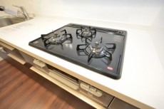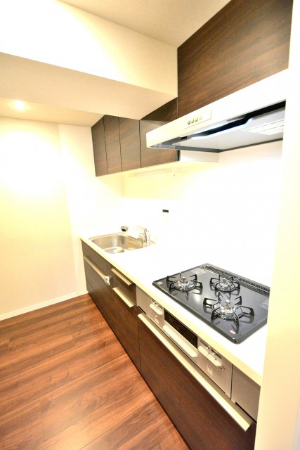 ワークトップもシンクも広く、3口コンロが設置されているので、お料理がとてもしやすそうです。