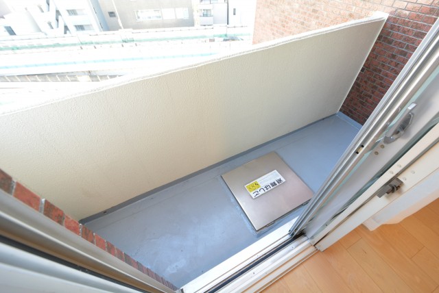 それでは最後はバルコニーのご紹介。今回はLDKの窓から出ます。バルコニーへの窓は二重サッシで防音対策もバッチリですよ。
