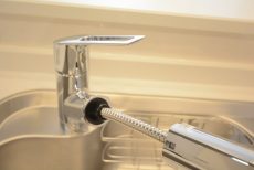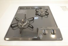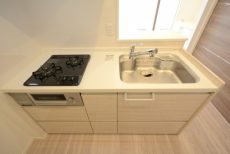 シンクの水栓は浄水器一体型、コンロは3口。機能性に配慮されていますので、